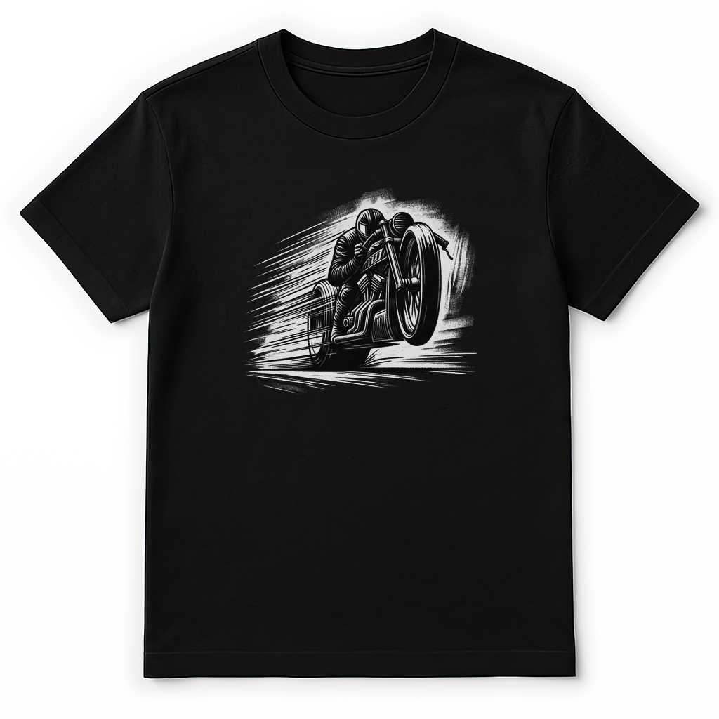 Mechaniacs Retro Drag Bike. You can almost hear it. That raw, uneven bark of a motor built for one thing only: to outrun sense itself. Black lines and the smell of fuel lingers.